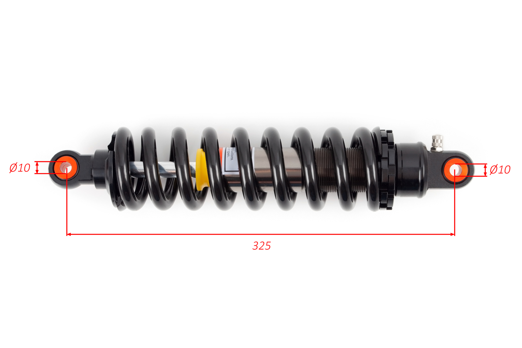 Задний амортизатор длиной 325 мм для питбайков и миникроссовых мотоциклов. Подходит для большого ассортимента питбайков. Оснащён прочной пружиной и корпусом, рассчитан на интенсивные нагрузки. Имеет традиционное верхнее и нижнее ухо для установки диаметром 10 мм.