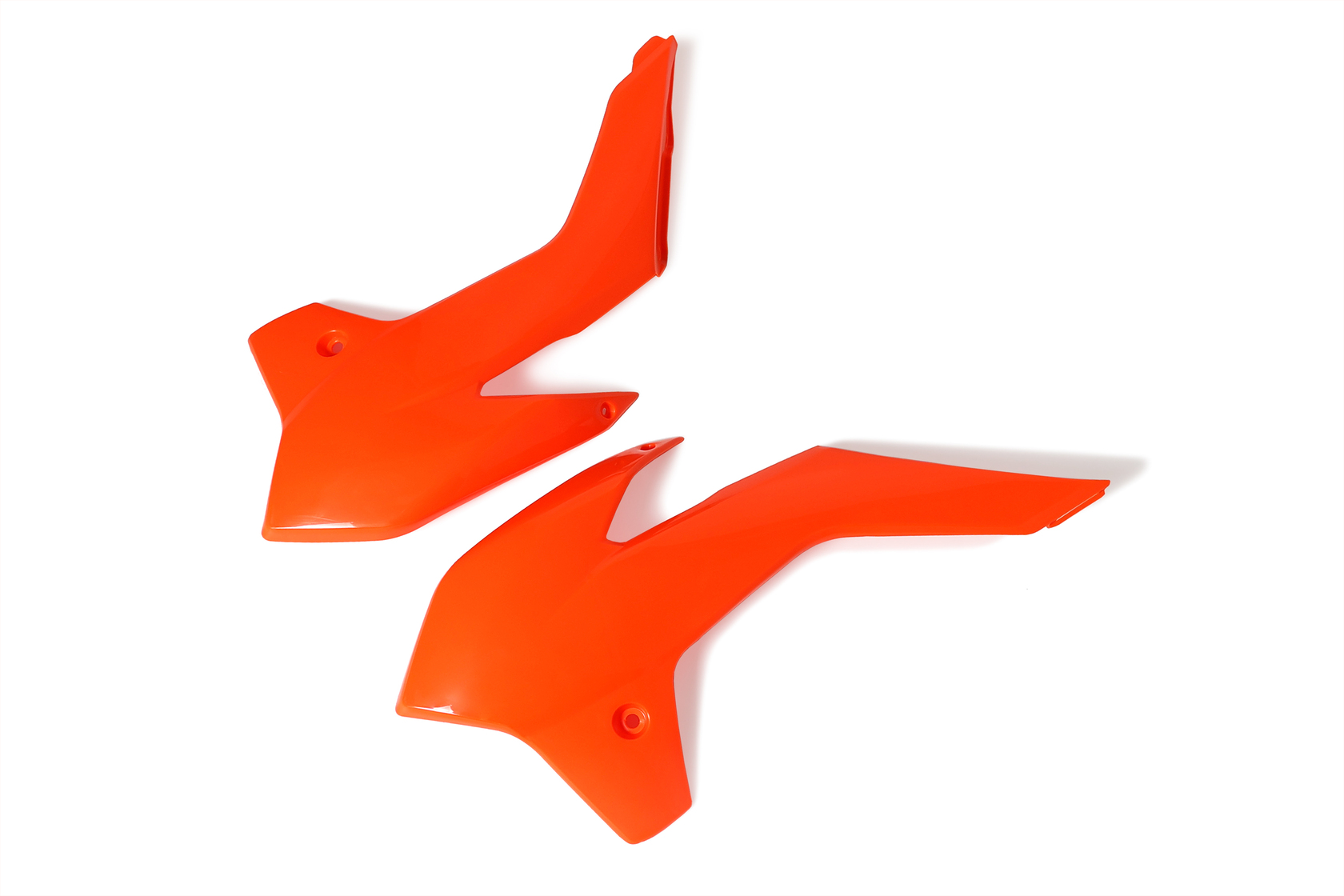 Пара оранжевых передних обтекателей для мотоциклов KTM SX85 2013-2016 года, а также аналогичных китайских моделей на раме K5 (Kayo K1, BRZ X5 и др.). Изготовлены из высококачественного, ударопрочного пластика под тип KTM SX85. Полный аналог оригинальной детали KTM с артикулом 4710805400004. Детали придают байку яркий внешний вид, обеспечивают отличную защиту и легко устанавливаются на штатные крепления без доработок.