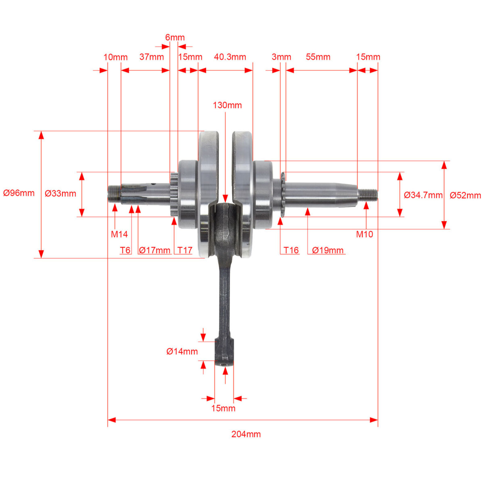 Полная совместимость. Прямая замена заводского коленвала для моторов 1P53FMH (110 см³), 1P52FMH (110 см³), 1P52FMI (125 см³), YX125 (1P53FMI/1P54FMI). Подходит на большинство питбайков, минимото и мопедов с горизонтальным двигателем 110–125 см³.