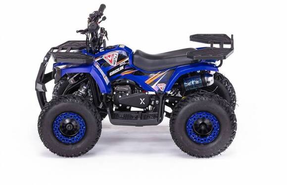 Детский бензиновый квадроцикл Motax Grizlik X-16 PS с механическим стартером подойдет детям от 3-х до 8-ми лет. Транспорт оборудован двухтактным двигателем, мощностью 3,5 л.с. Оснащен металлическими багажниками (спереди и сзади), отбойником, яркой оптикой. Система запуска - ручной стартер нового типа (легкий запуск). Разгоняется до 45 км/ч. Предусмотрен ограничитель скоростного режима. Допустимая нагрузка на изделие не должна превышать 60 кг.